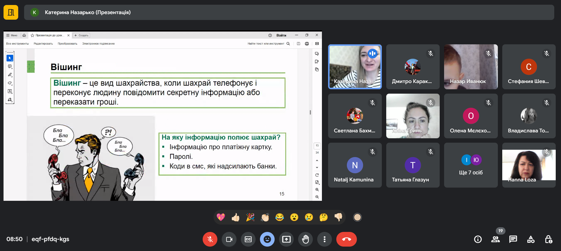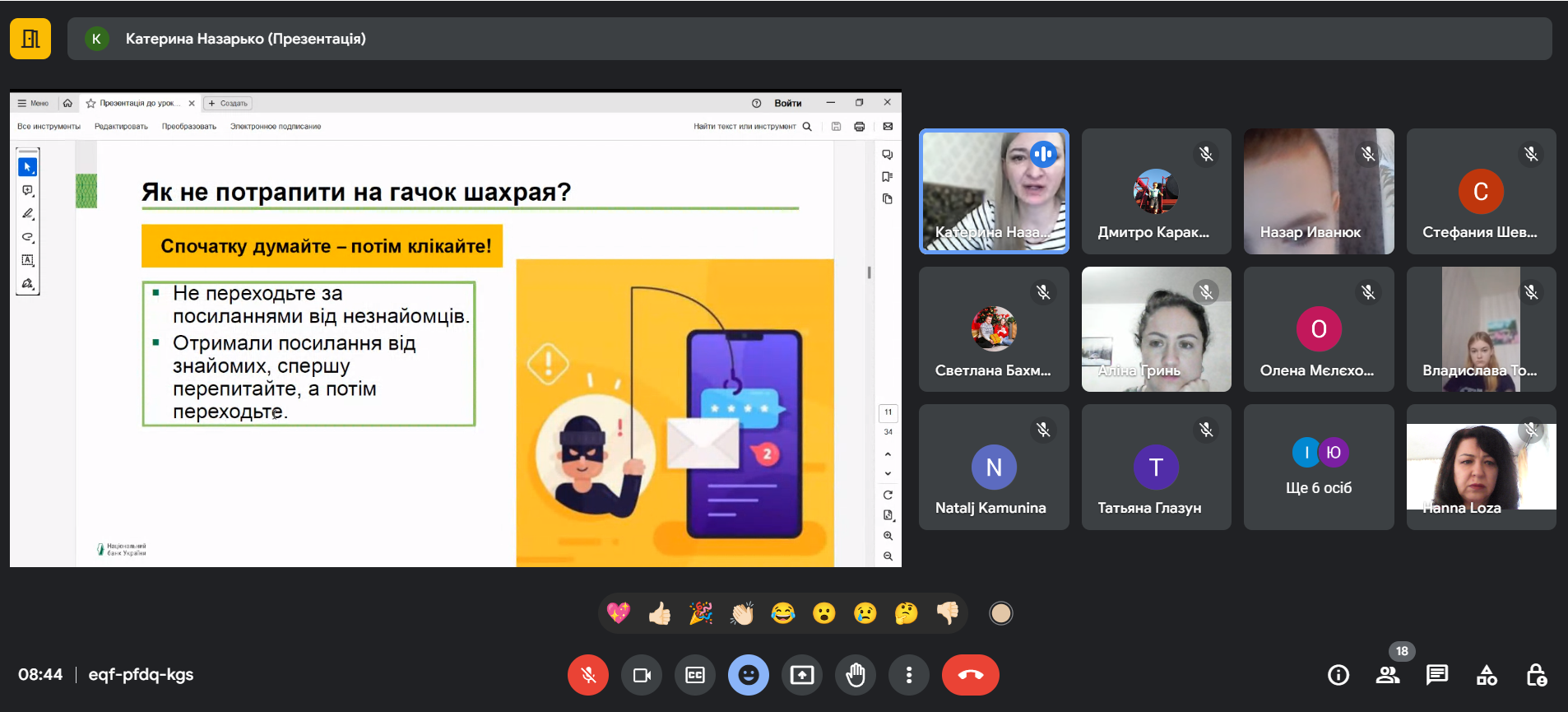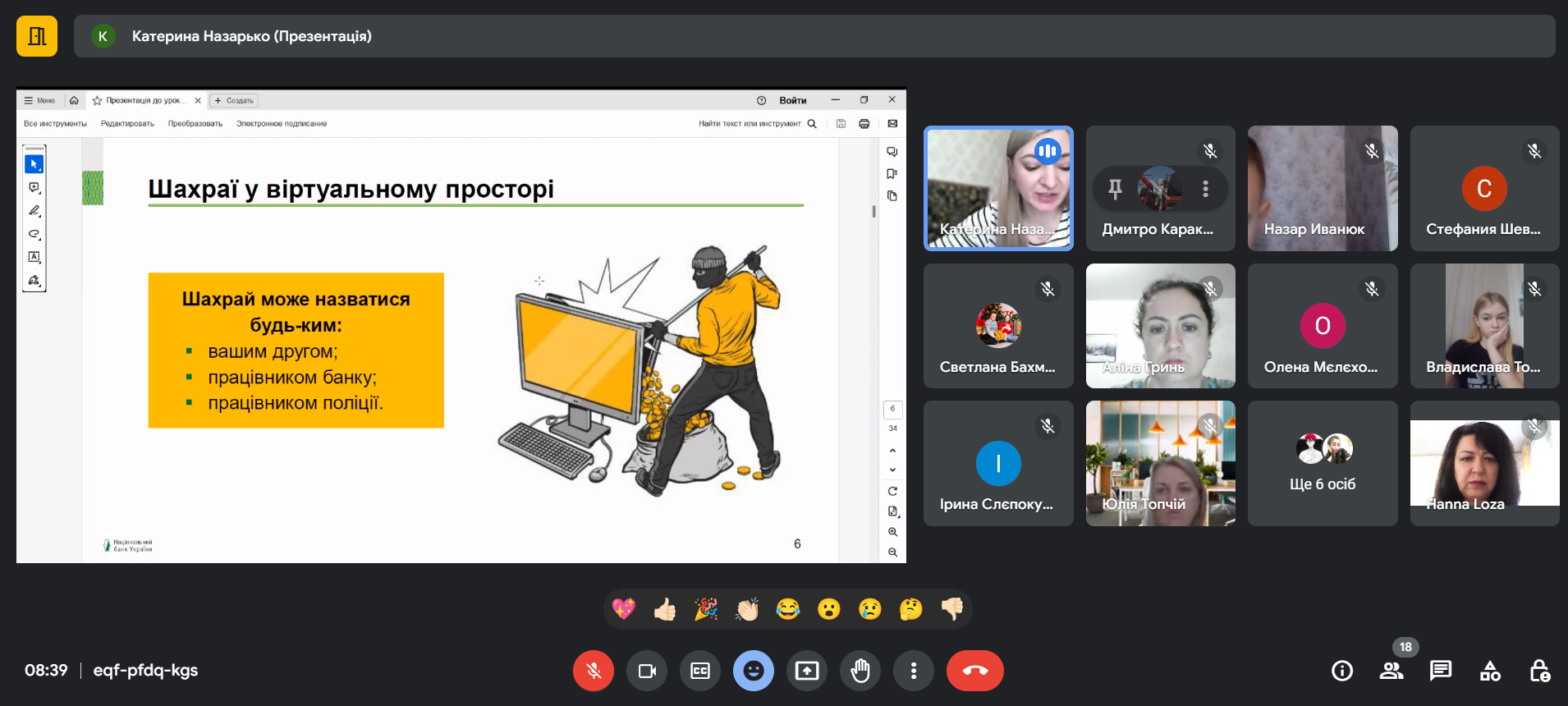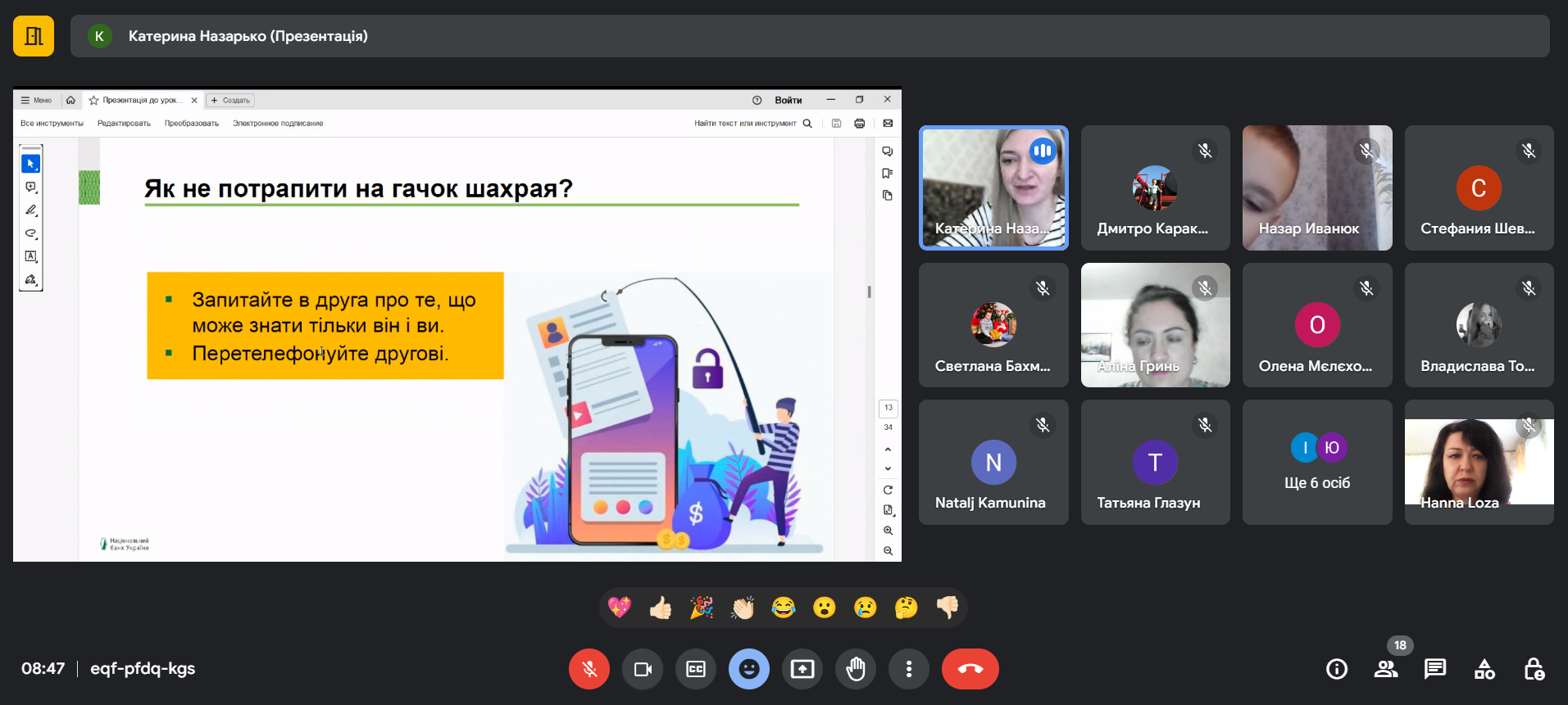 Кожна підтема супроводжувалася активним обговоренням, учасники зустрічі наводили власні приклади “спілкування” з шахраями, зазначали, яким способом вони уникають шахрайських дій.